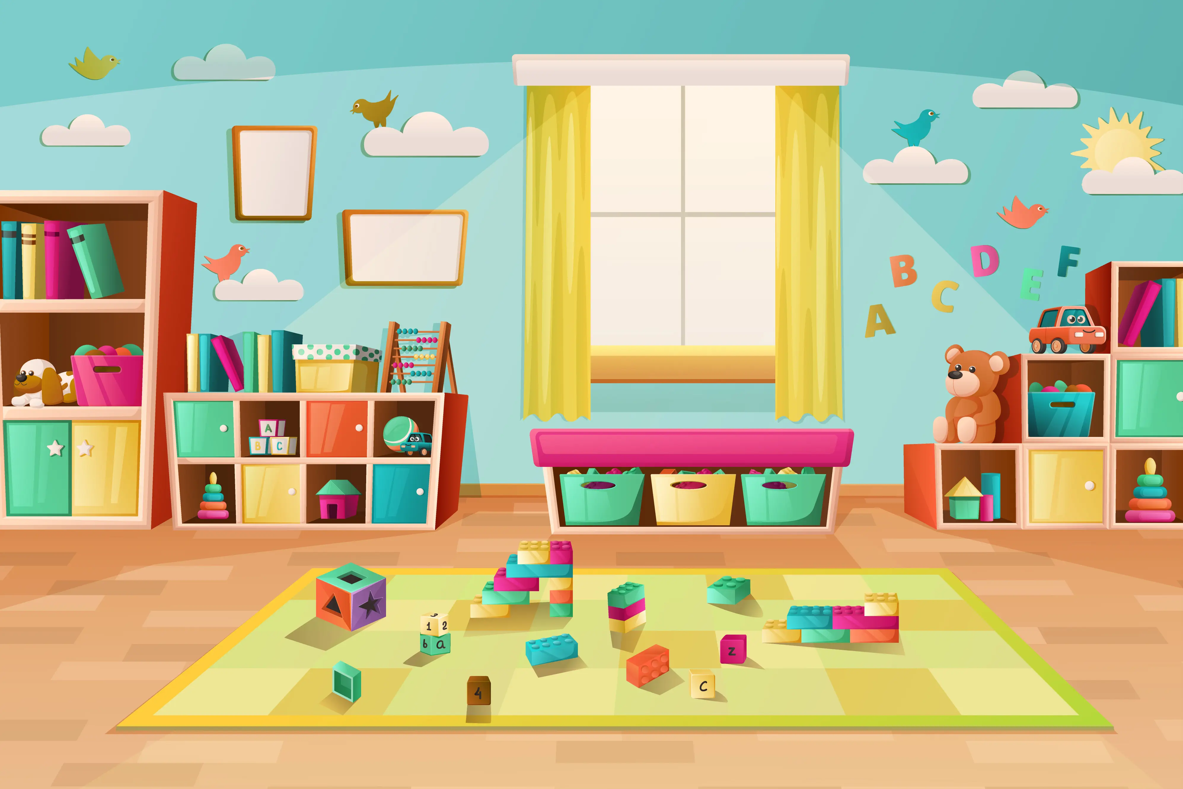 - сон, прием пищи, занятия и игры проходят в специально отведенных помещениях;